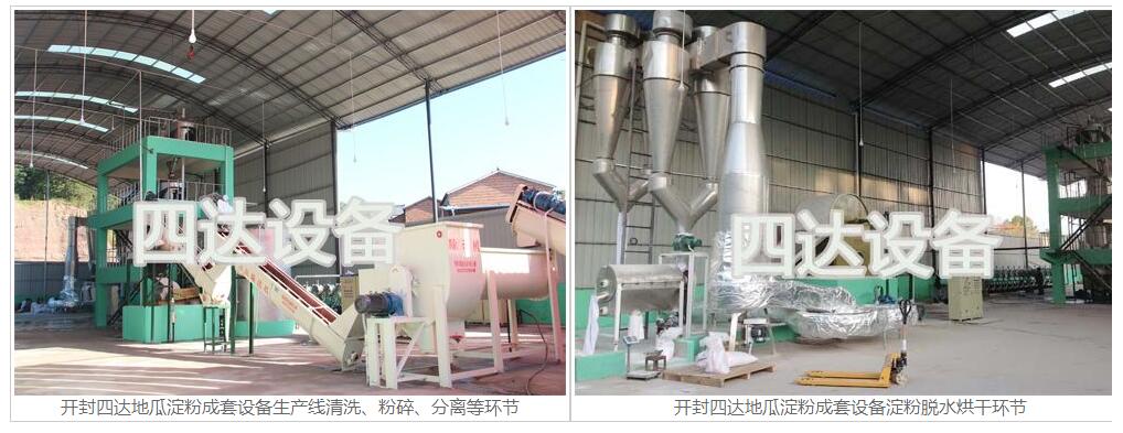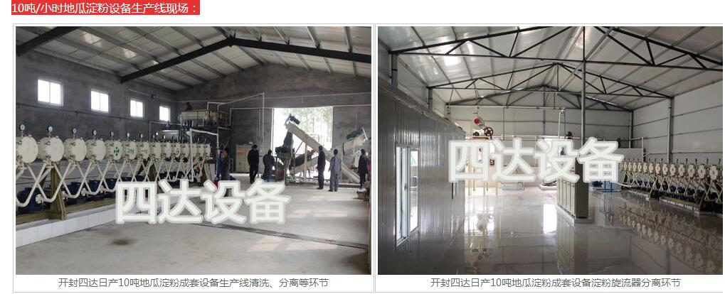 開封四達公司地瓜淀粉加工生產線根據投資能力大小和對淀粉質量(精制淀粉或粗淀粉)要求,選擇適宜的半機械化或全機械化或自動化淀粉設備